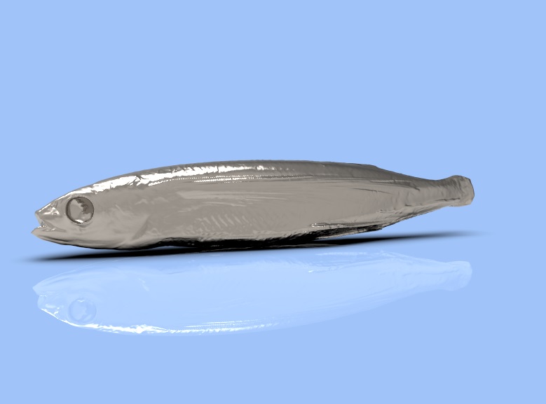 実際のトビウオを冷凍させて石膏型で反転させたモデルを弊社の3Dスキャナでスキャンしてデータを編集しました。